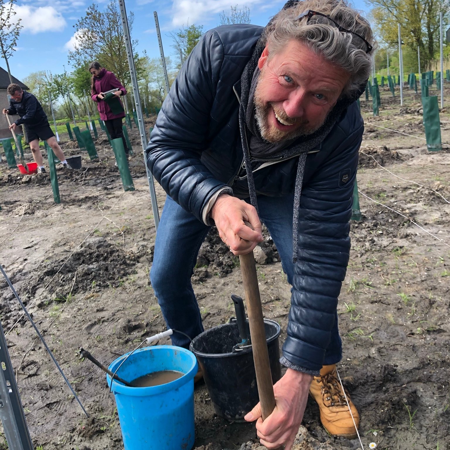 Met veel plezier en trots onze eerste wijnstok geplaatst op dit prachtige terrein in Bergen. En onder begeleiding van een enthousiaste en bevlogen Sico, de wijngaardenier. Super leuk.