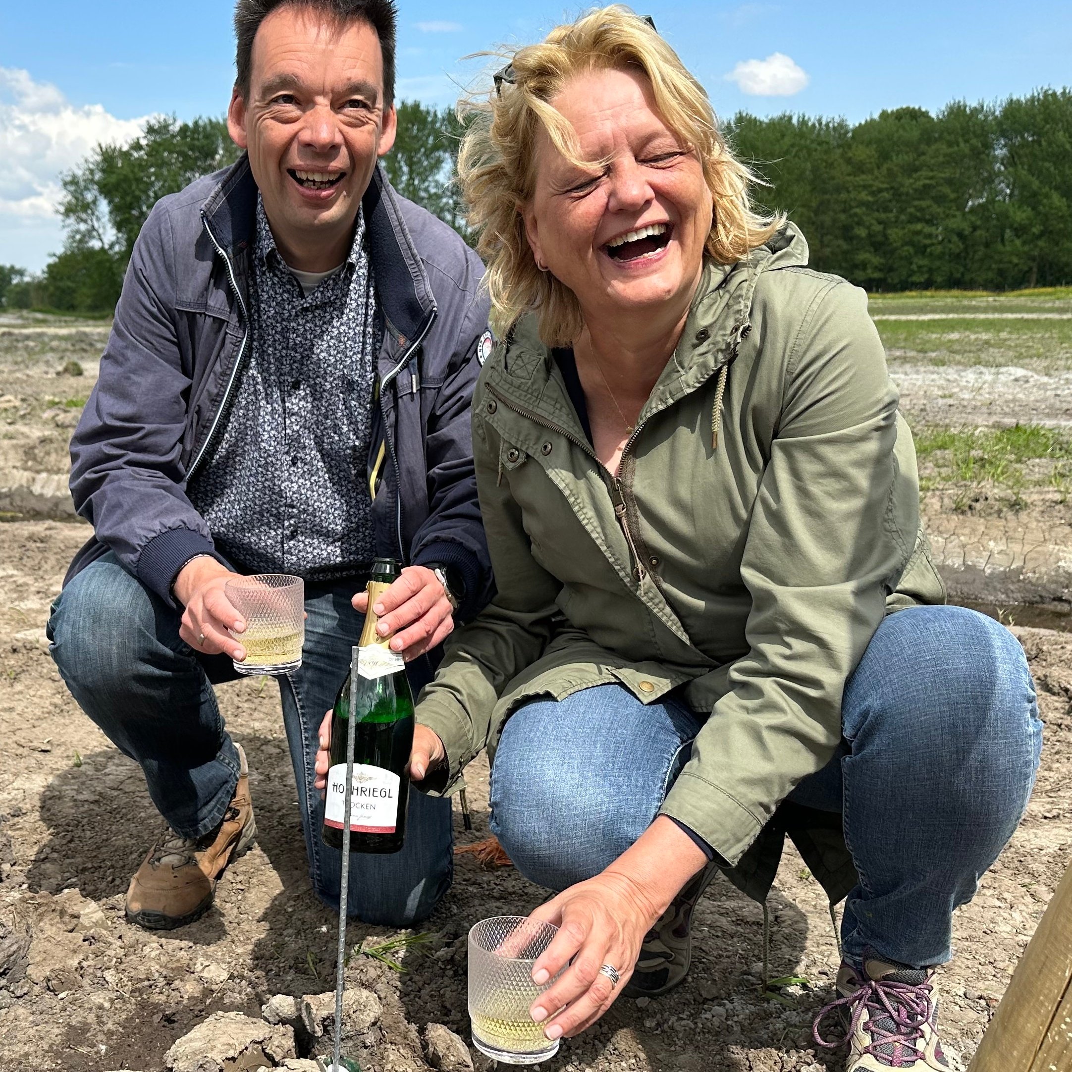 In mei 2026 sta je zelf met je laarzen in de klei. Je plant je eigen wijnrank met jouw naamlabel.