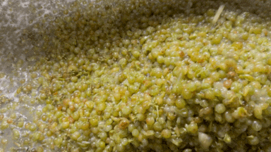 Maar de Muscaris heeft een 'probleem'. Hij is onweerstaanbaar lekker, met een kenmerkend lychee aroma. Hij is bij ons als eerste rijp en bouwt prachtige suikers op. En dat bleef niet onopgemerkt.