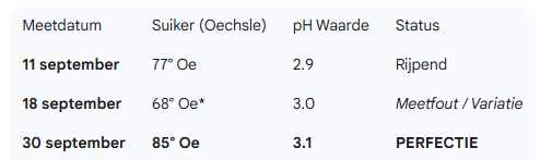 Kijk zelf naar de cijfers uit ons logboek. Je ziet hoe lastig een goed meting is. Dit is geen marketingpraat, dit is de uitdagingen voor onze oogst.