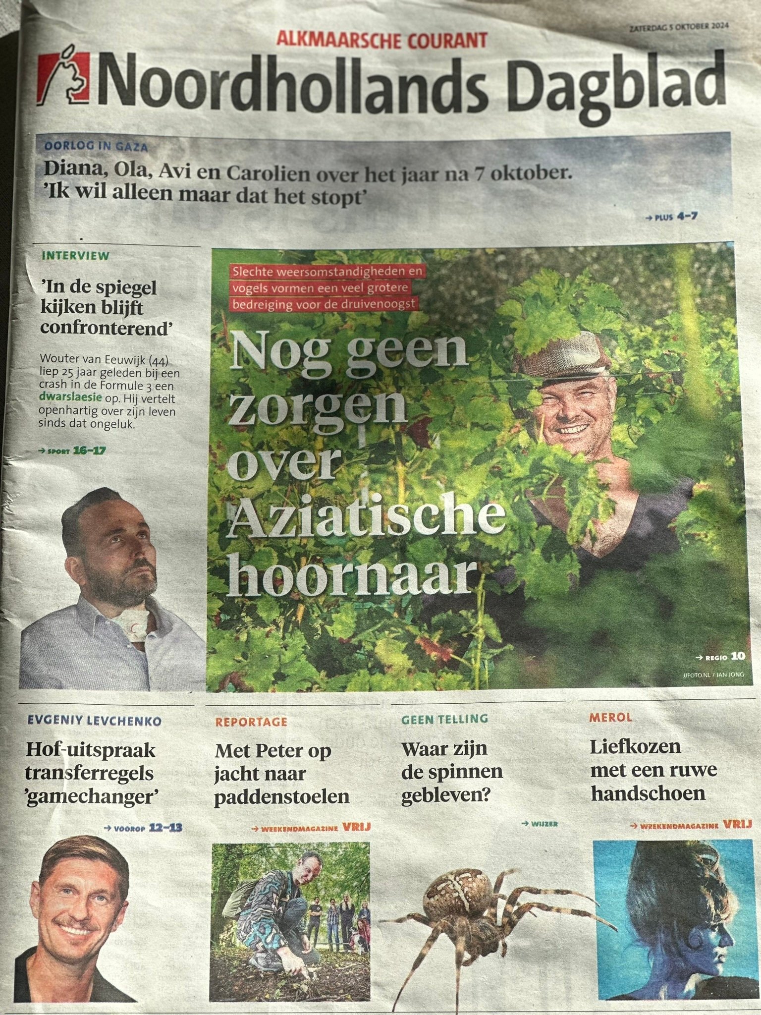 Begin september zagen we ze. Een nieuwe plaag. Geen vogels, maar wespen. Duizenden. Er bleek een enorm nest tussen de bomen te zitten. Ze negeerden alles en stortten zich massaal op onze superrijpe Muscaris druiven.